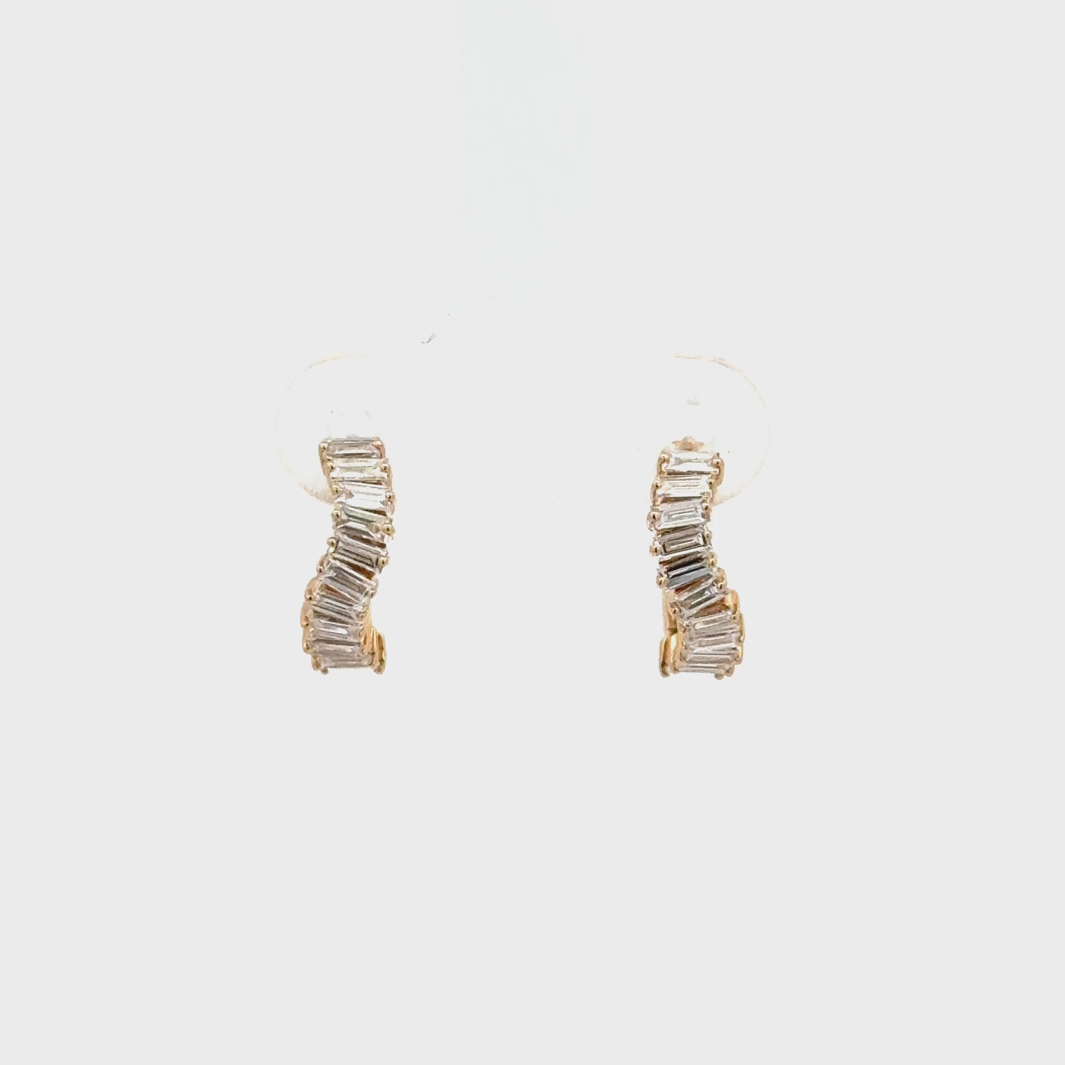 Aretes tipo hoop elaborados en oro de 14 quilates, engastados con 22 diamantes de corte baguette que suman un total de 0.58 ct. Su diseño limpio y contemporáneo resalta la geometría elegante del corte baguette y el brillo sofisticado del diamante, creando una pieza moderna y atemporal ideal para el uso diario o para elevar un look elegante.