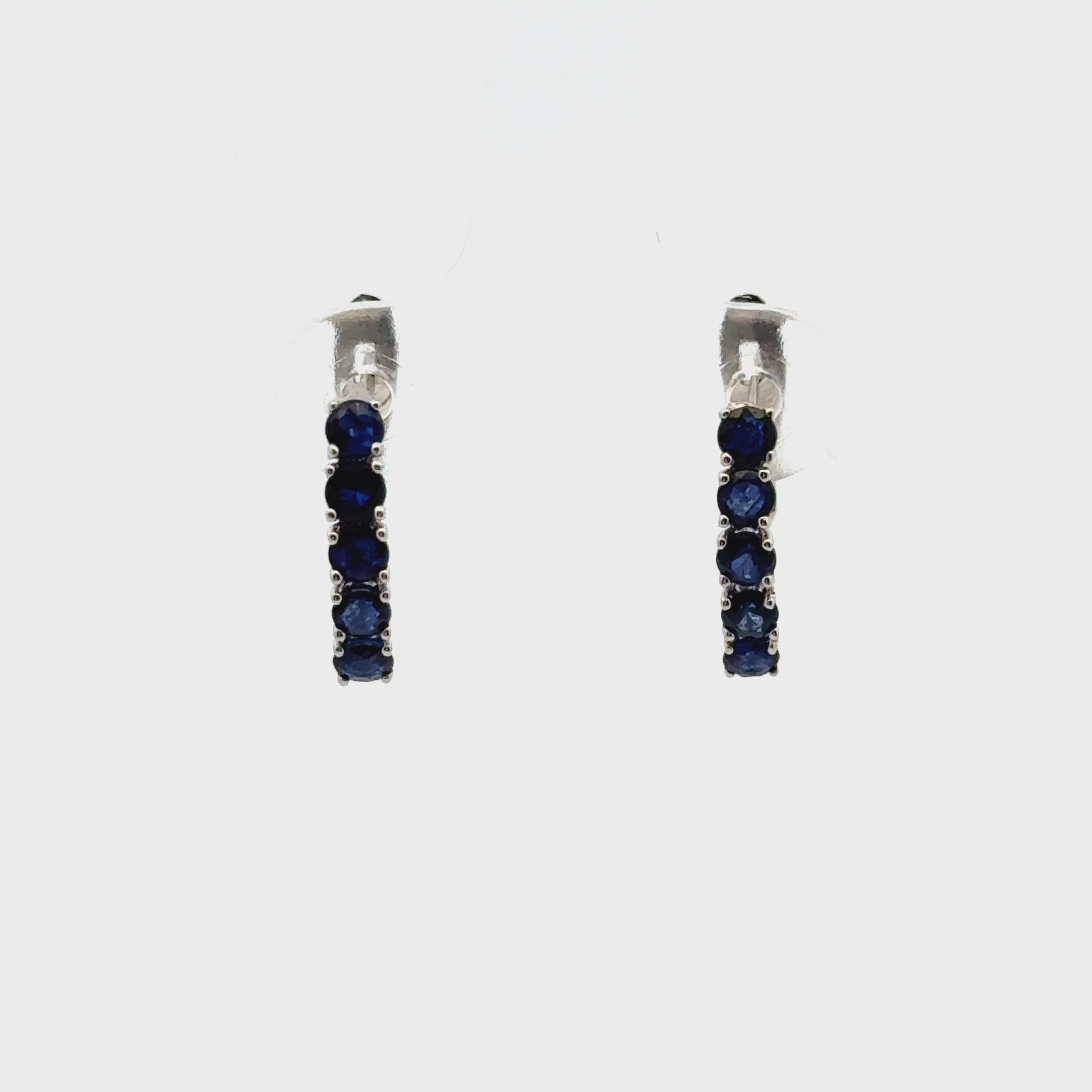 Aretes tipo hoop en oro amarillo de 14 quilates con zafiros naturales que dan un color profundo y elegante. Un diseño versátil y atemporal, perfecto para el uso diario sin perder elegancia.
